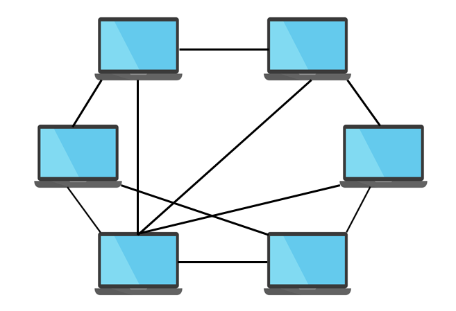 - 중앙 서버를 사용하지 않는 방식으로, 네트워크에 참여하는 모든 컴퓨터는 똑같이 서버-클라이언트 역할을 겸하며 검색, 데이터 전송에 있어서 동일한 수준의 책임을 지게 됨