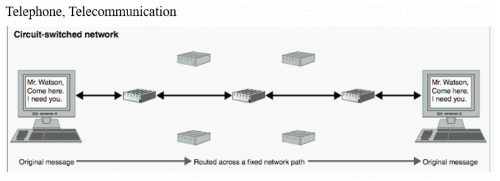 - 통신을 위해 연결을 해야 하며, 연결이 되고 나면 출발지부터 목적지까지 도착하는데 사용하는 회선 전체를 독점하기 때문에 다른 사람이 끼어들 수 없음