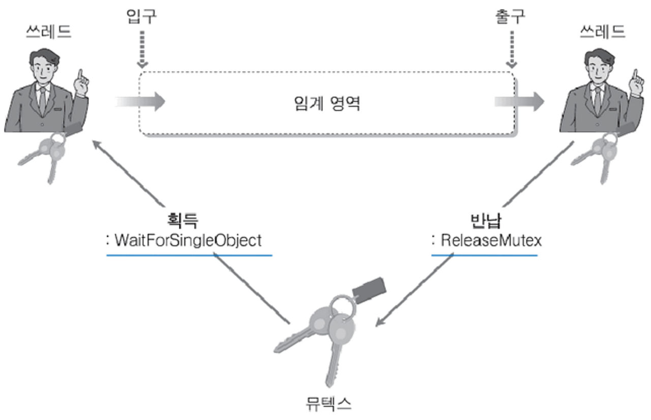 - 일종의 Locking 매커니즘을 가지고 Lock을 가지고 있을 때에만 공유 데이터에 접근이 가능