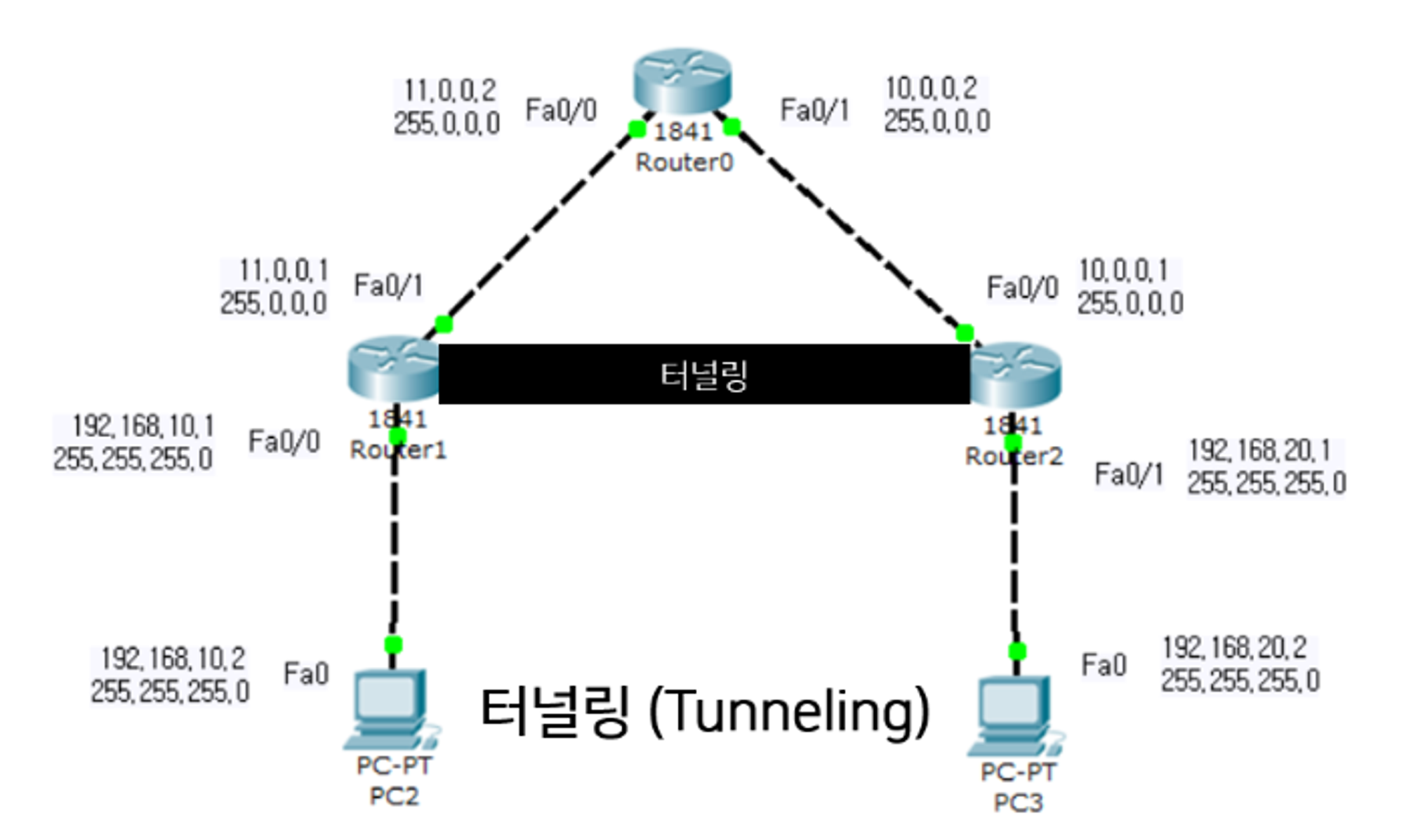 패킷 내에 터널링할 대상을 캡슐화 시켜 목적지까지 전송