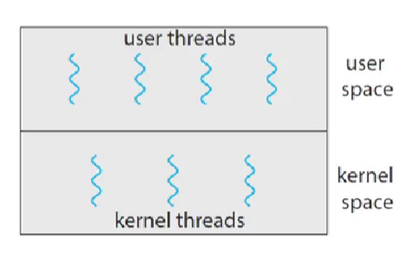 - 커널이 스레드의 생성 및 스케쥴링을 관리
