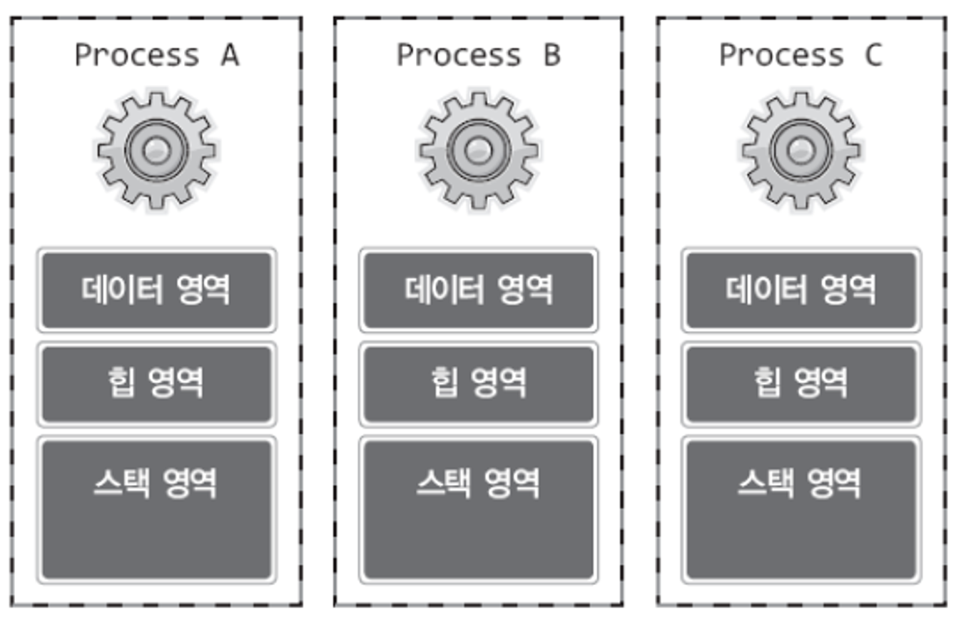 - 스레드는 메모리 주소를 공유하기 때문에 계속 같은 메모리 주소만 참조하면 되므로 캐시, 버퍼를 사용하는 과정을 생략
