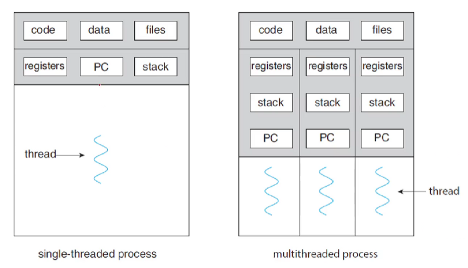 - 프로세스 내에서 하나의 스레드가 중단되어도 커널이 다른 스레드들을 계속 실행